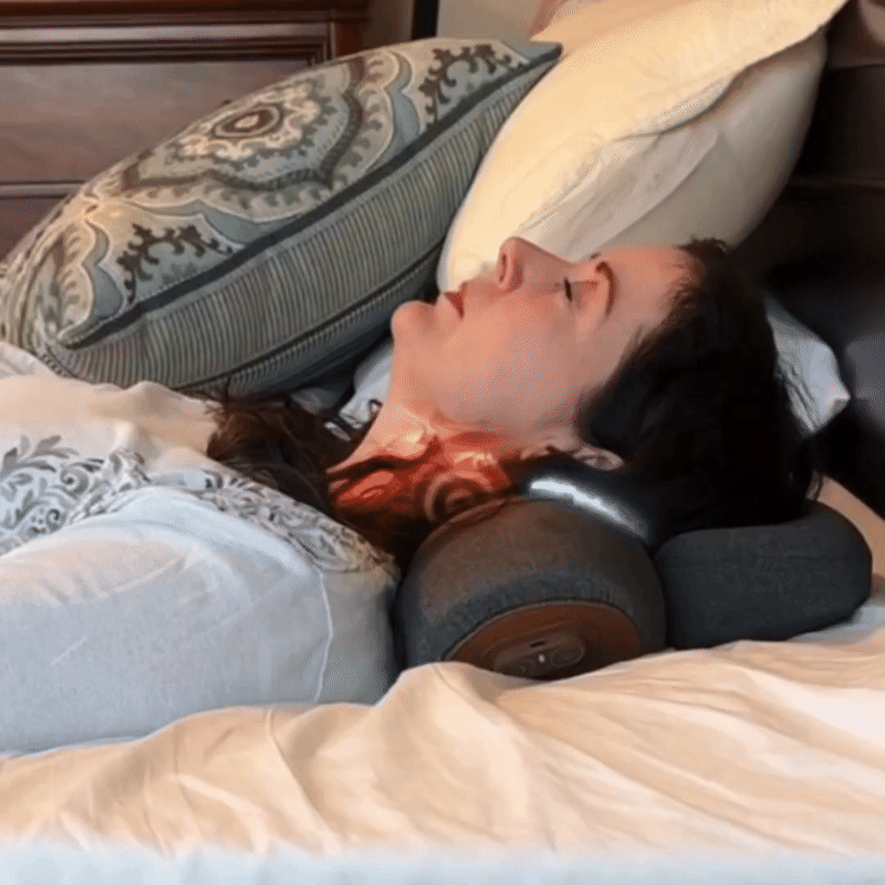 Wärme, Massage und sanfte Traktion wirken zusammen, um chronische Verspannungen zu lösen – besonders bei nach vorn geneigter Kopfhaltung.