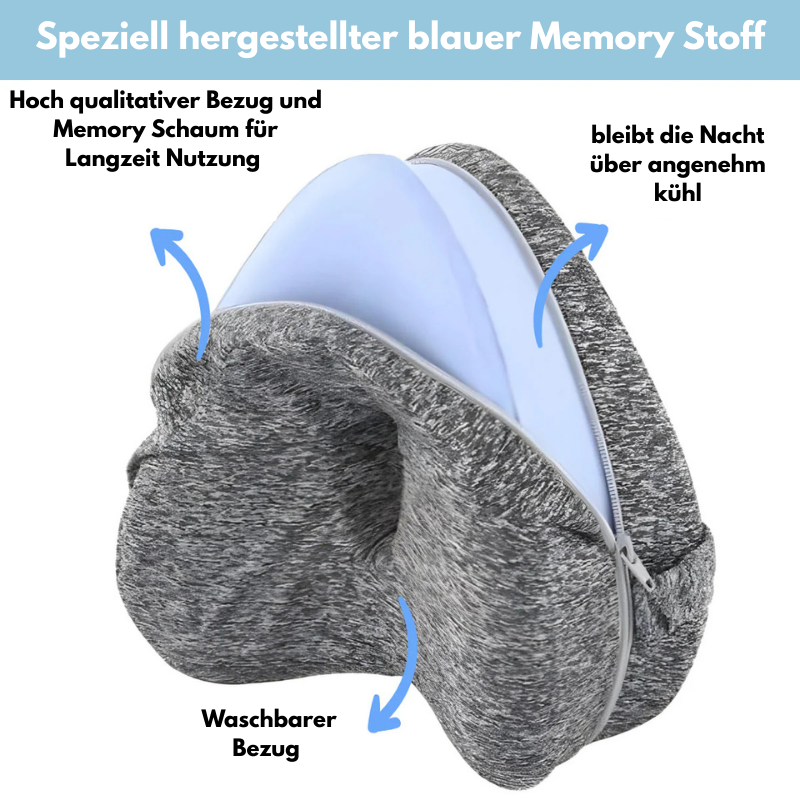 Obwohl unser Kissen speziell für Seitenschläfer entwickelt wurde, ist es dank seiner vielseitigen Form auch für Rücken- und Bauchschläfer geeignet und sorgt so für eine bessere Ausrichtung und mehr Komfort für alle.