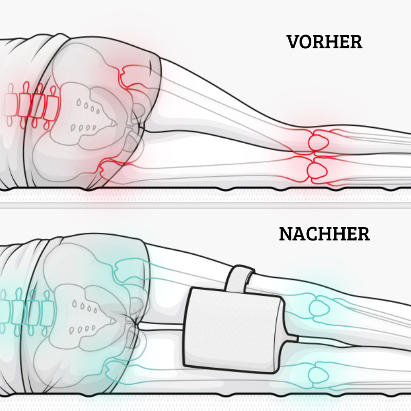 Wann sind Sie das letzte Mal schmerzfrei aufgewacht? Als Seitenschläfer passiert jede Nacht das Gleiche: Ihr oberes Bein sinkt ab, die Hüfte verdreht sich, und enormer Druck entsteht im Lendenbereich. Ignorieren Sie das weiter, drohen Nervenschäden, chronische Schmerzen und schlimmstenfalls eine Operation.