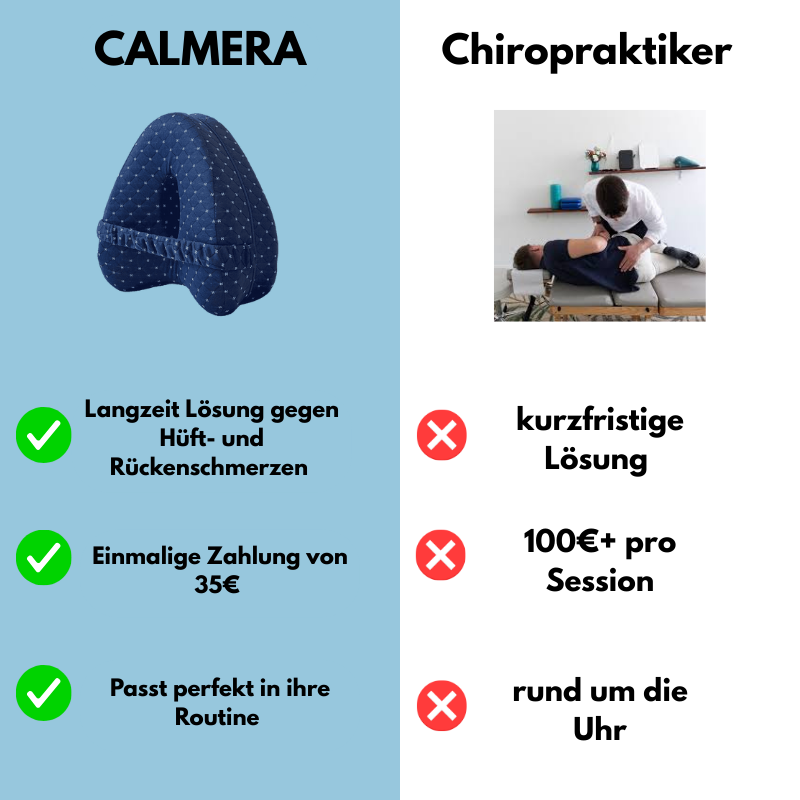 Aber es gibt eine einfache Lösung! Das Calmera Stützkissen zwischen den Beinen bringt Ihre Wirbelsäule in die richtige Position, reduziert Schmerzen und entlastet Ihren Ischiasnerv.